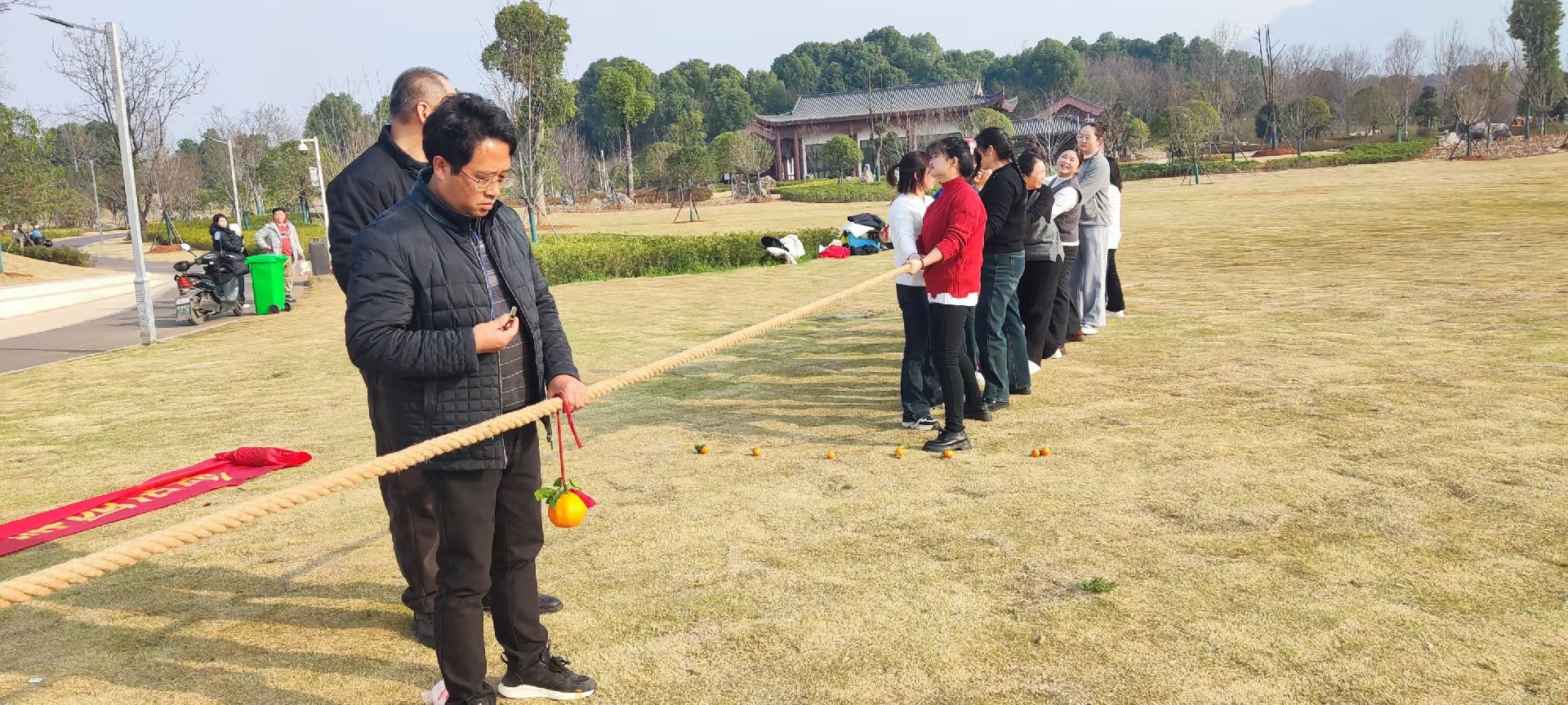 拔河比赛在美丽的金湖生态公园进行,随着比赛的哨声响起,由职能部门和业务部门组建的2支队伍进入赛场,大家个个精神饱满、奋楫争先,双方队员们都双手紧握长绳,拔河绳上的红色标记线在两队之间来回移动,充分展现巾帼风采。赛场上观战的人们也纷纷加入啦啦队,为参赛队员呐喊助威,现场顿时成了欢乐的海洋。最终,综合一队凭借着默契的配合与出色的发挥,摘得桂冠。