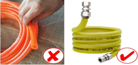燃气连接管不能被其他非燃气专用连接管代替。常见的专用燃具软管有橡胶复合软管和金属软管。燃具软管与用气设备关键的接口处应确保连接牢固,燃具软管与用气设备关键的接口处应确保连接牢固,定期检查是否漏气。